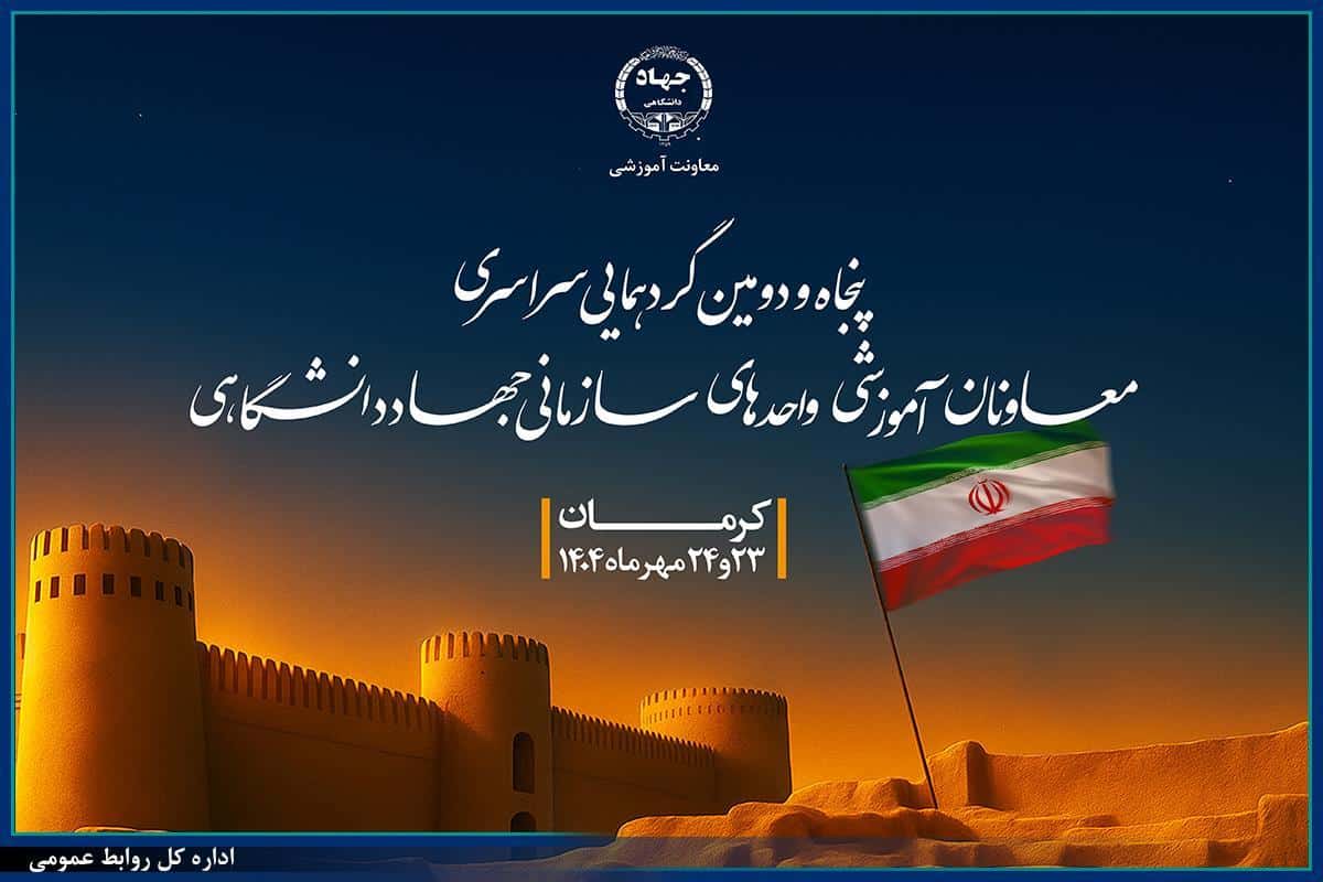 پنجاهودومین گردهمایی سراسری معاونان آموزشی واحدهای سازمانی جهاددانشگاهی، با حضور رئیس جهاددانشگاهی، مسئولان استانی و جمعی از معاونان این نهاد در شهر کرمان برگزار خواهد شد.